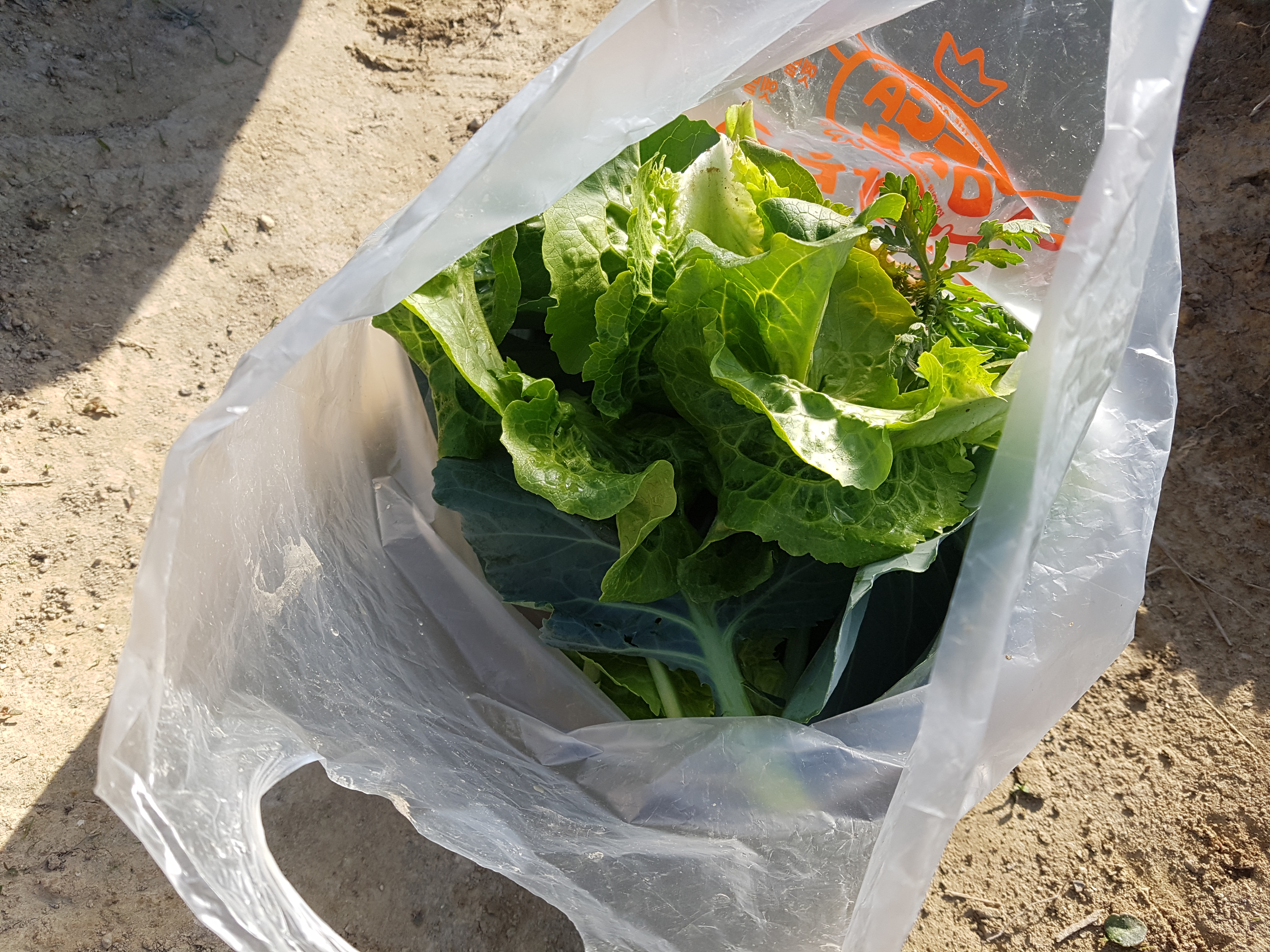 겨자채, 케일, 쑥갓, 다다기 양배추 1개 ㅎㅎㅎ