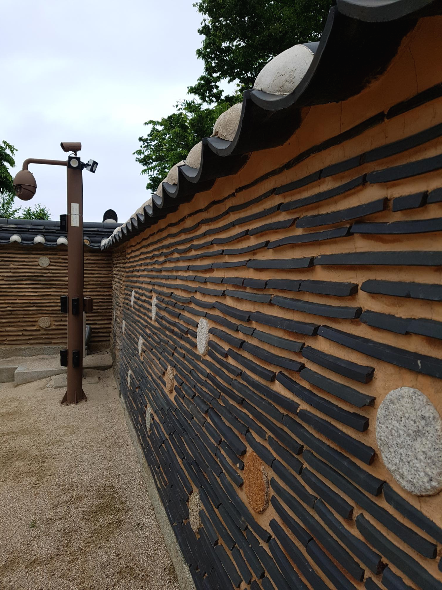 원통보전의 담장 - 진흙과 토담에 기와와 둥근 화강암으로 별무늬를 장식한 담장