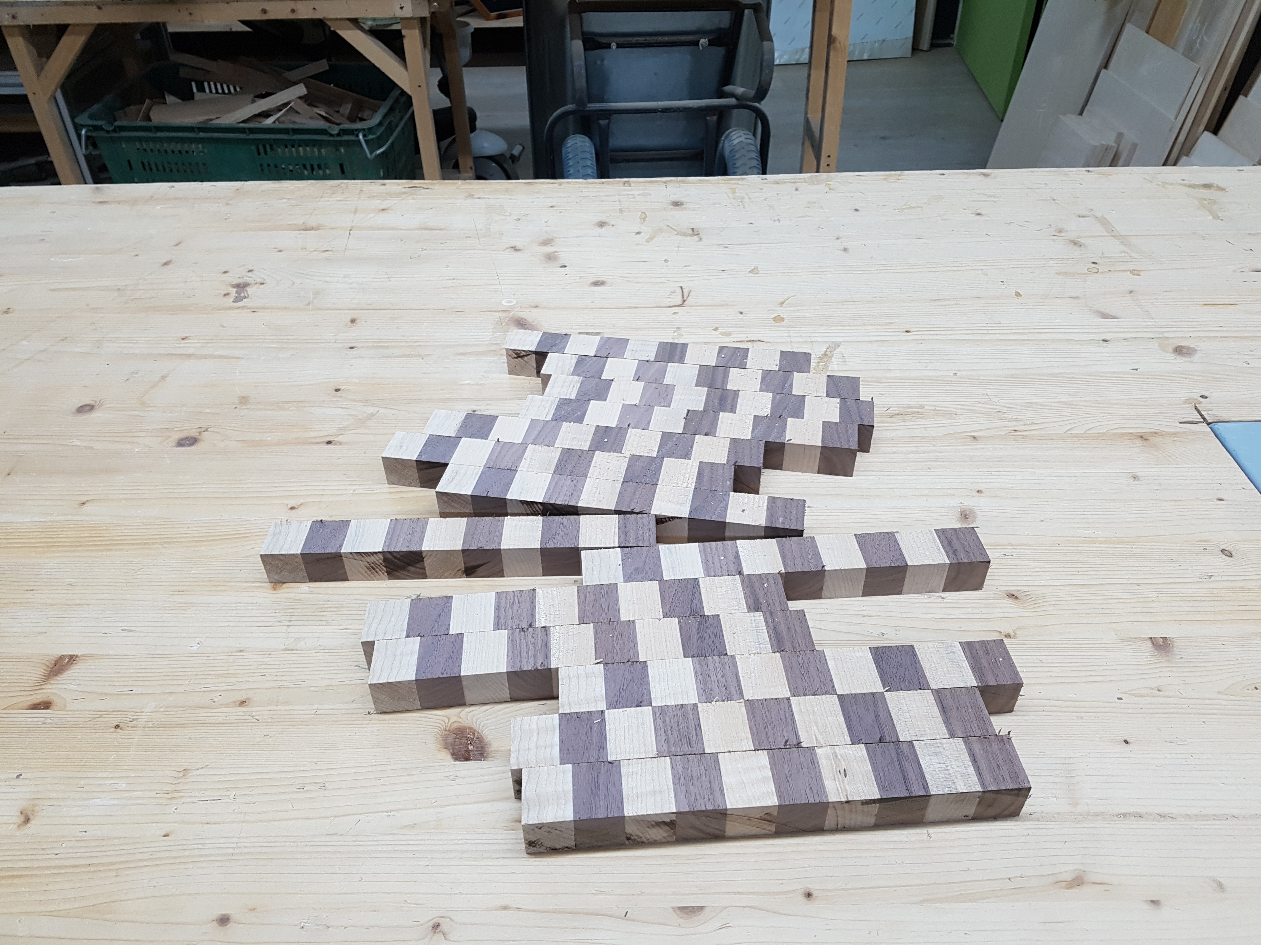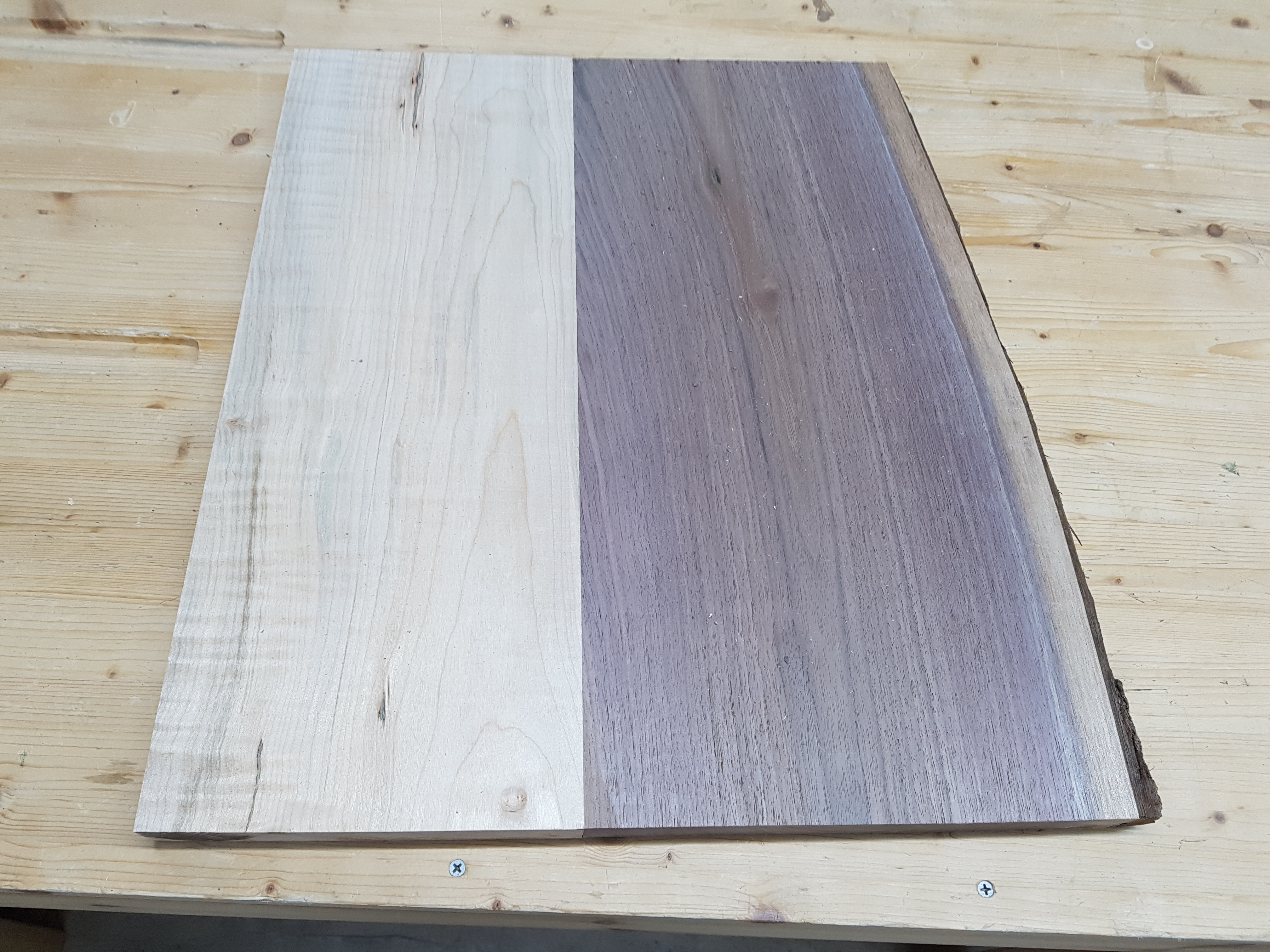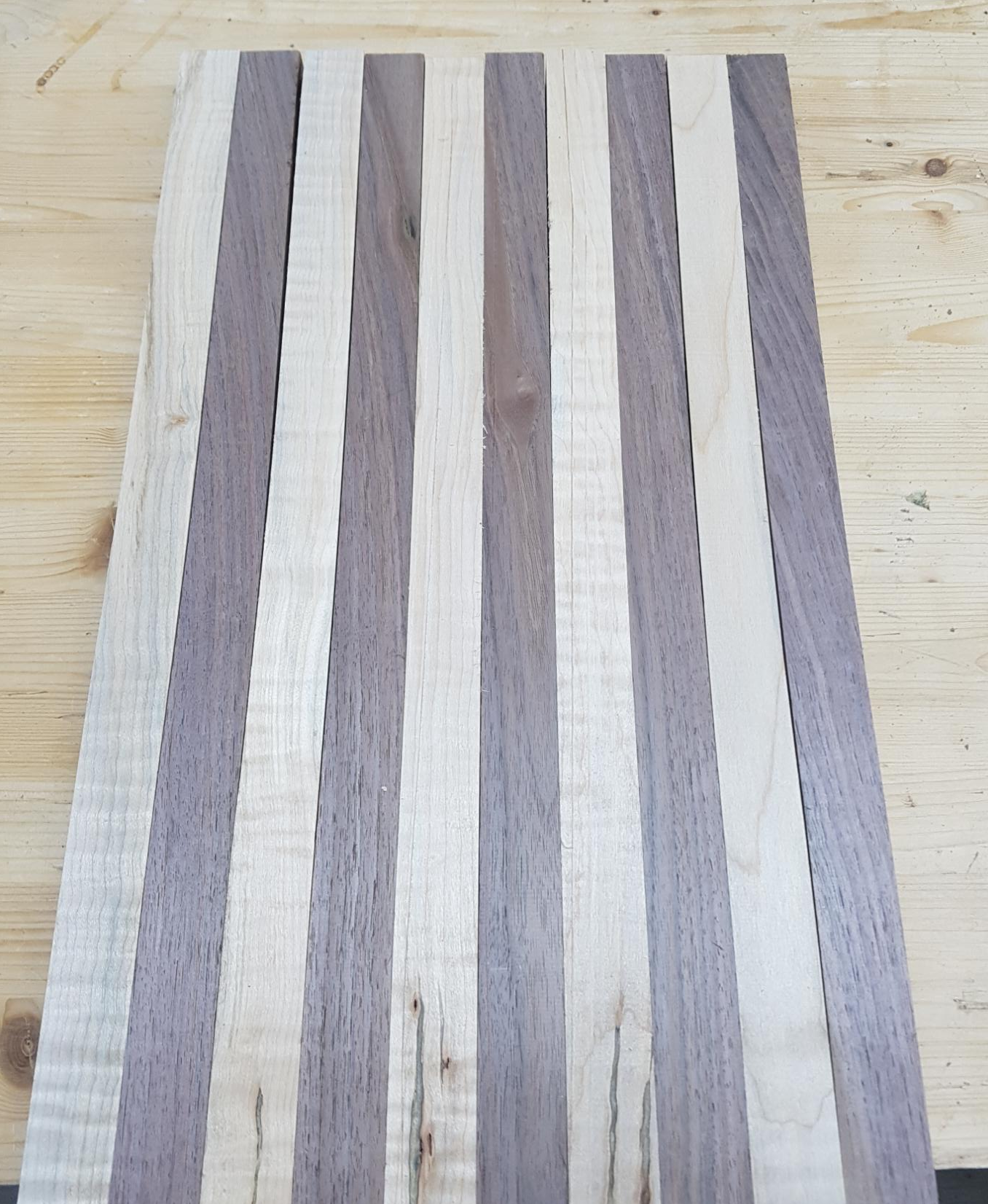 다크브라운의 월넛과 아이보리 색상의 하드메이플 원목을 집성하여