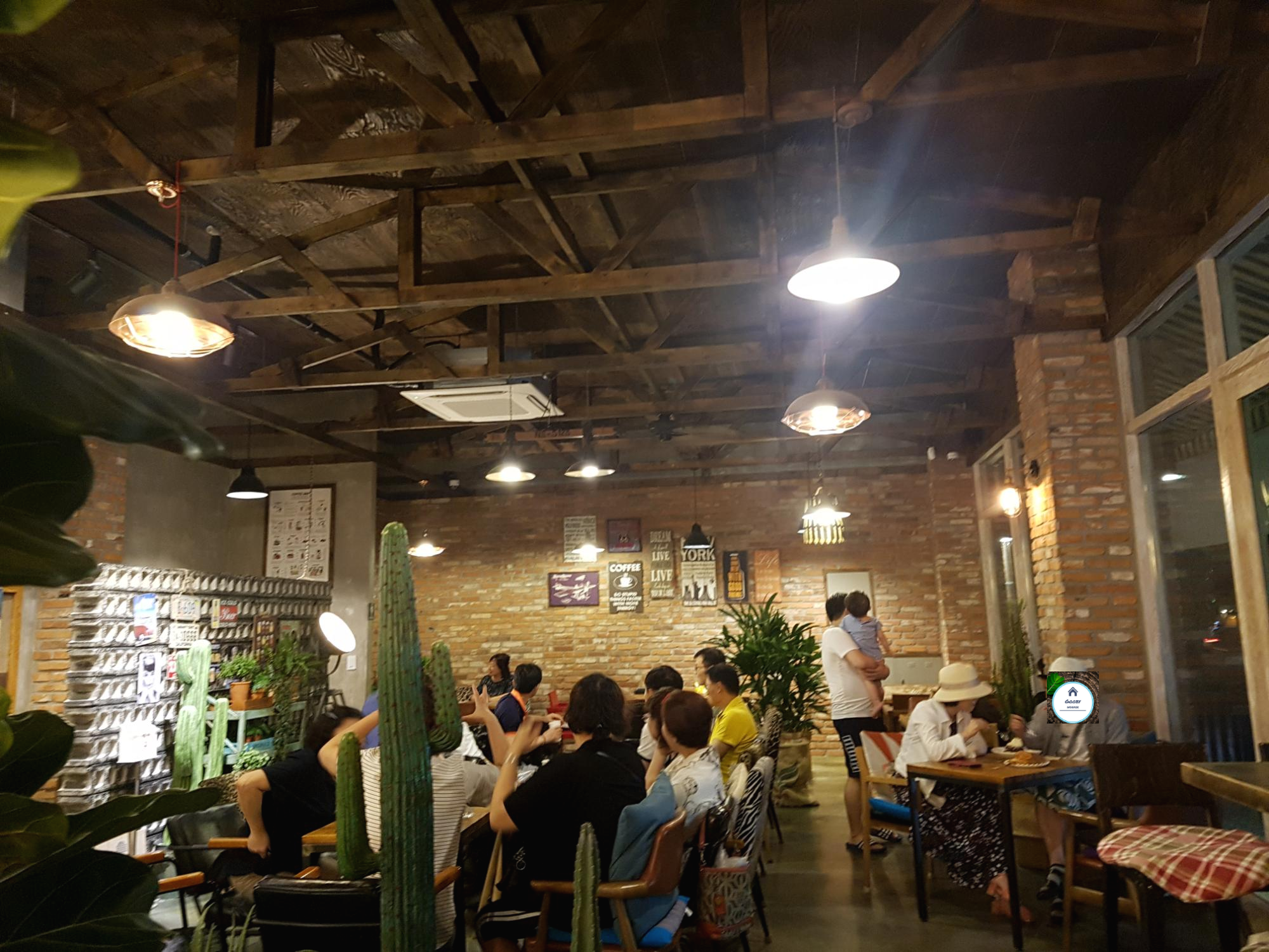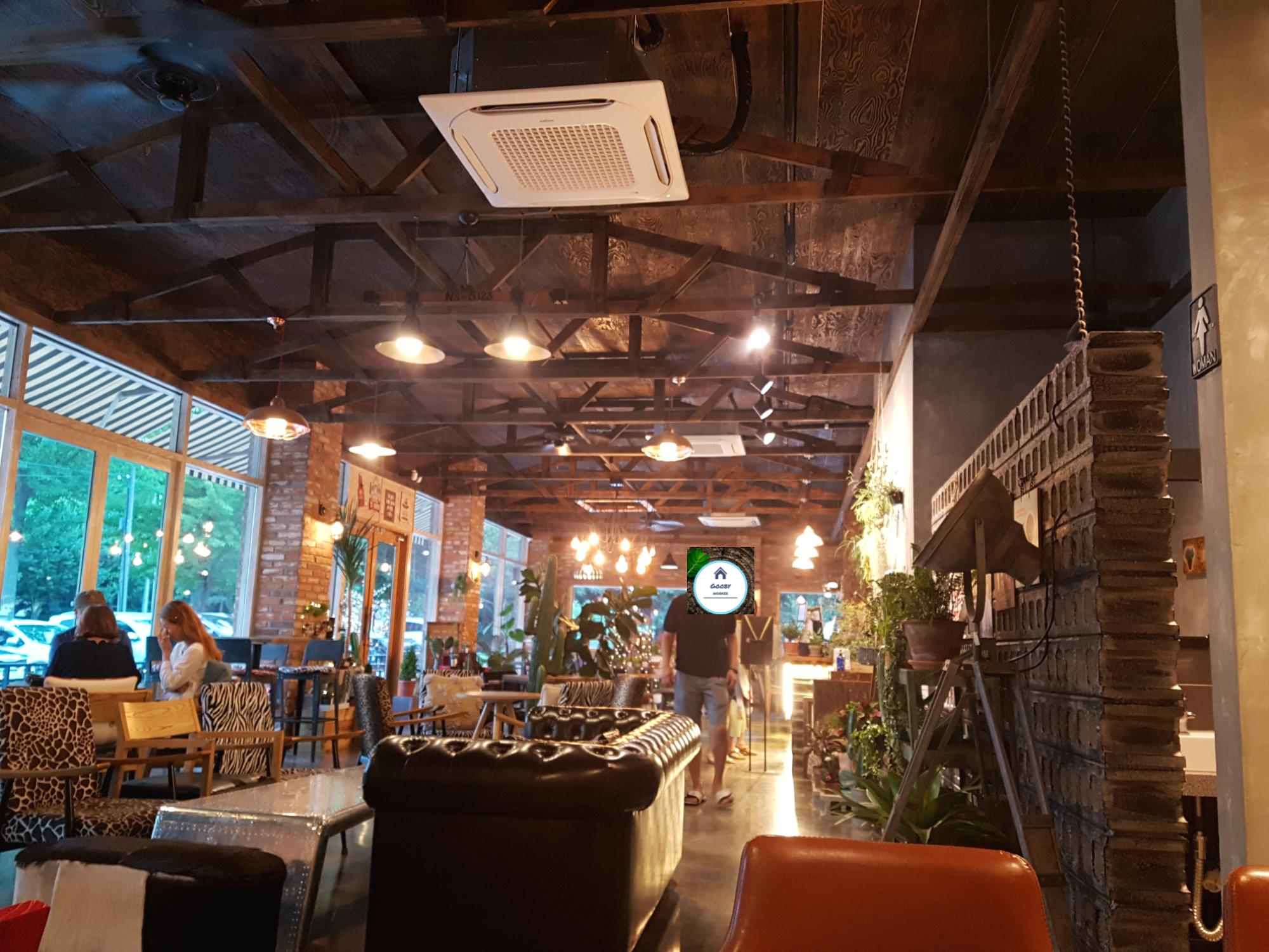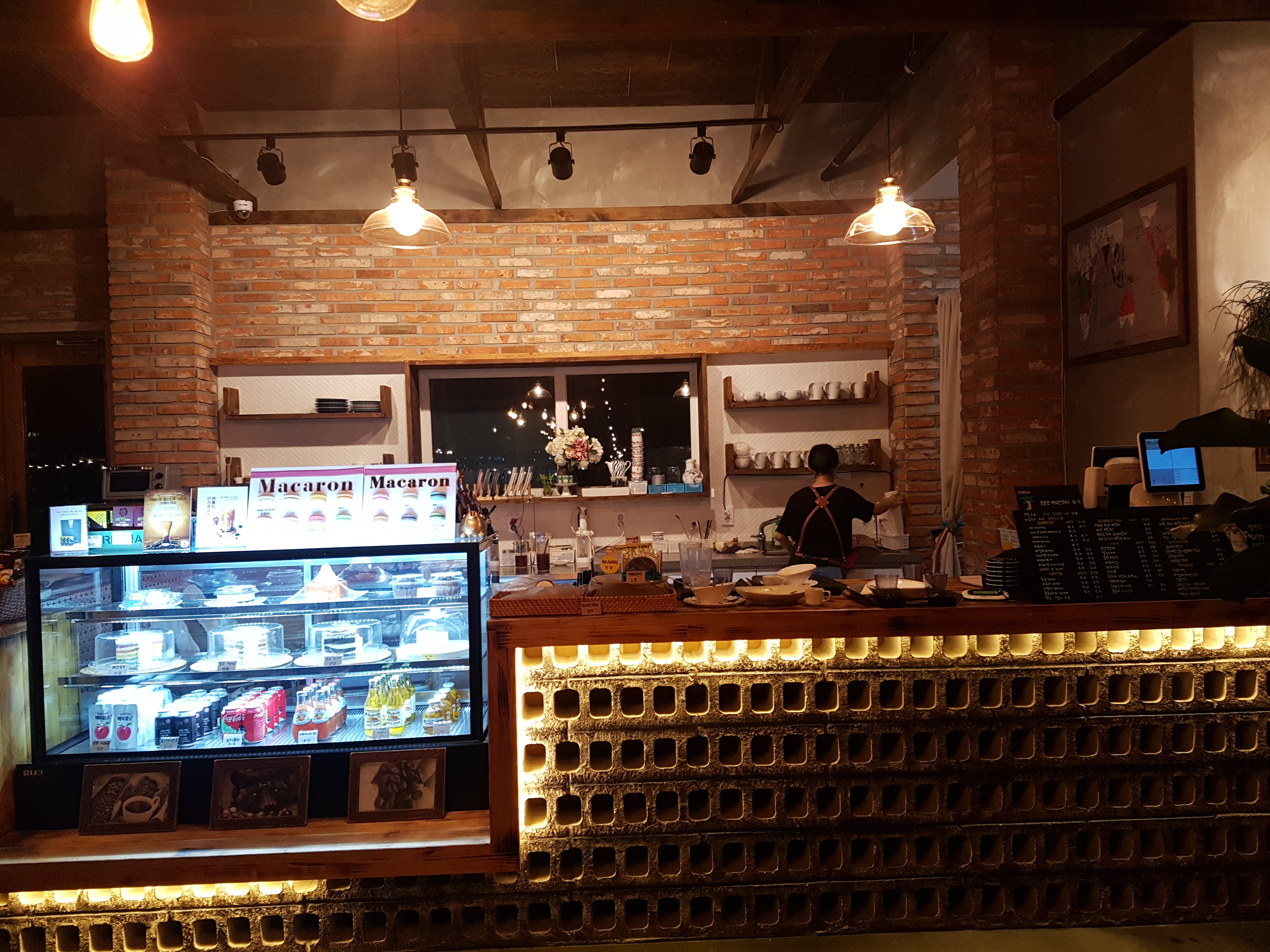 적벽돌과 시멘트 블록 조명이 조화롭게 어우러져 편안합니다