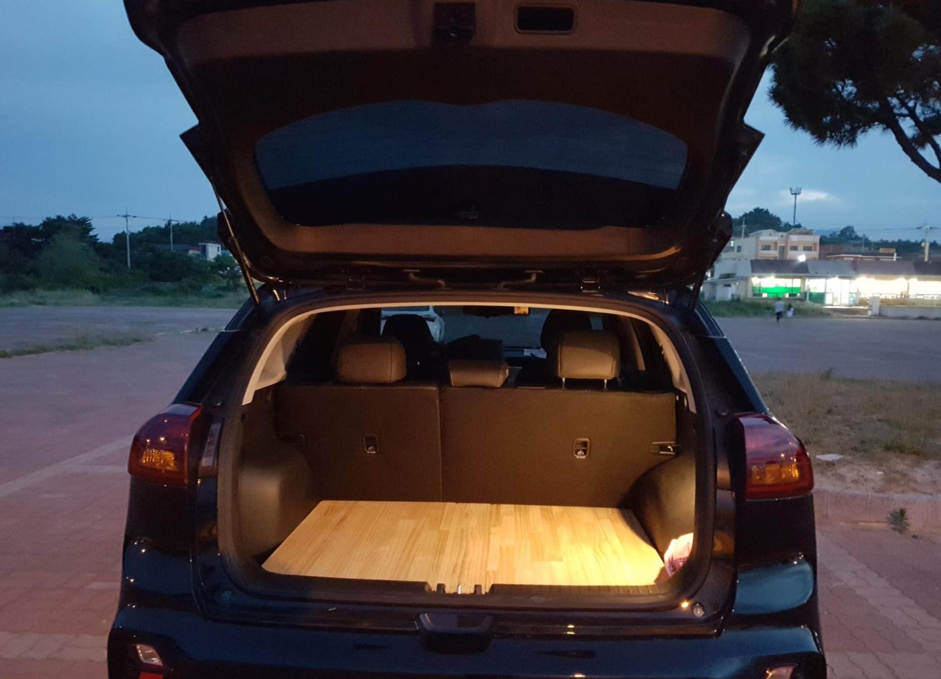 뒷좌석 폴딩 후 매트 하나 깔면