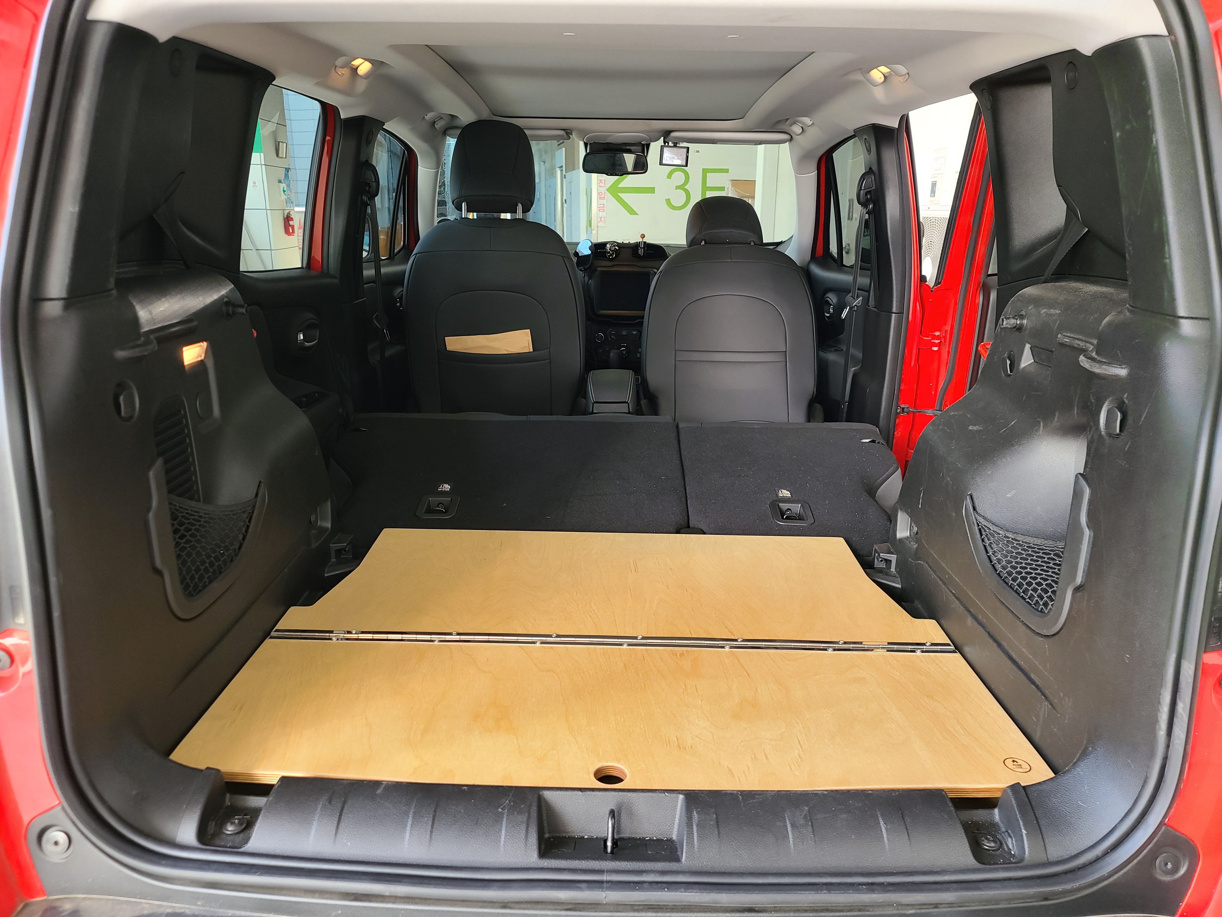 지프 레니게이드는 뒷좌석 폴딩 시 경사도가 조금 있습니다