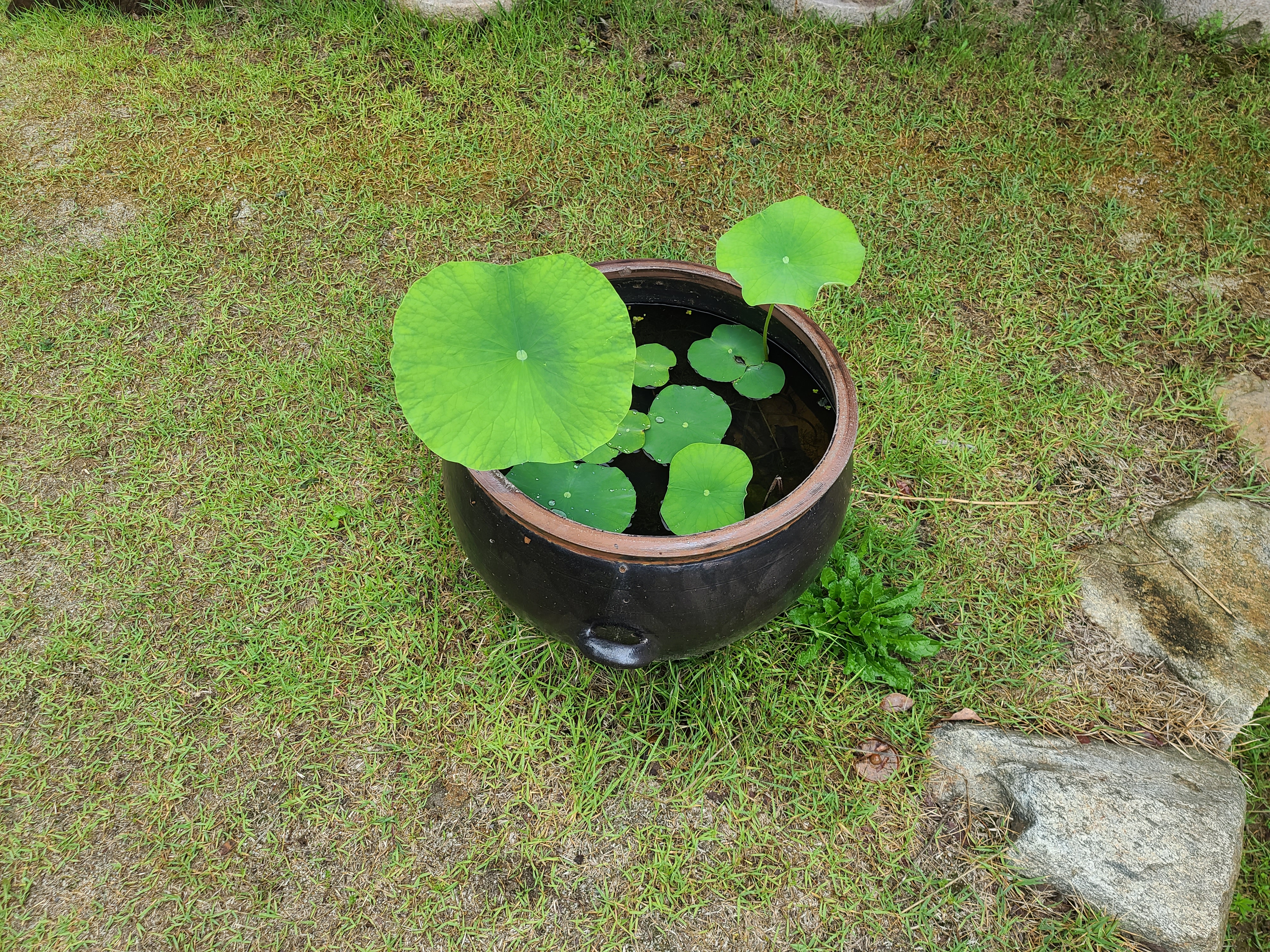 공간에 아름답게 자리한 항아리 연꽃