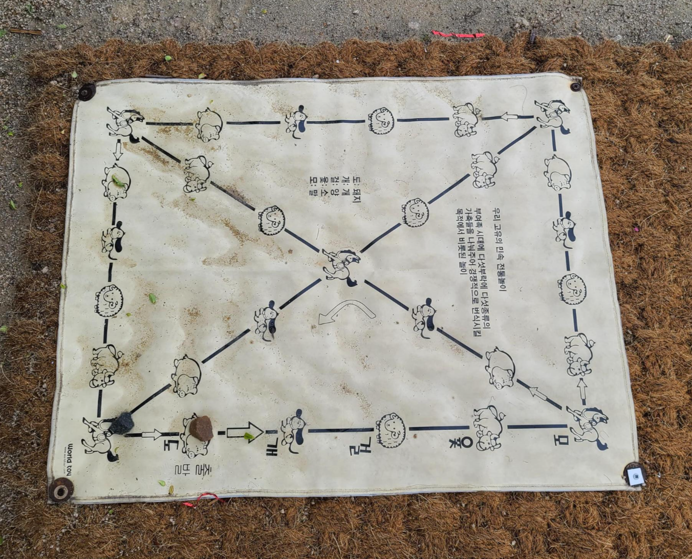 넓은 멍석이 깔려있는 마당에서 윷놀이도 즐기 수 있다