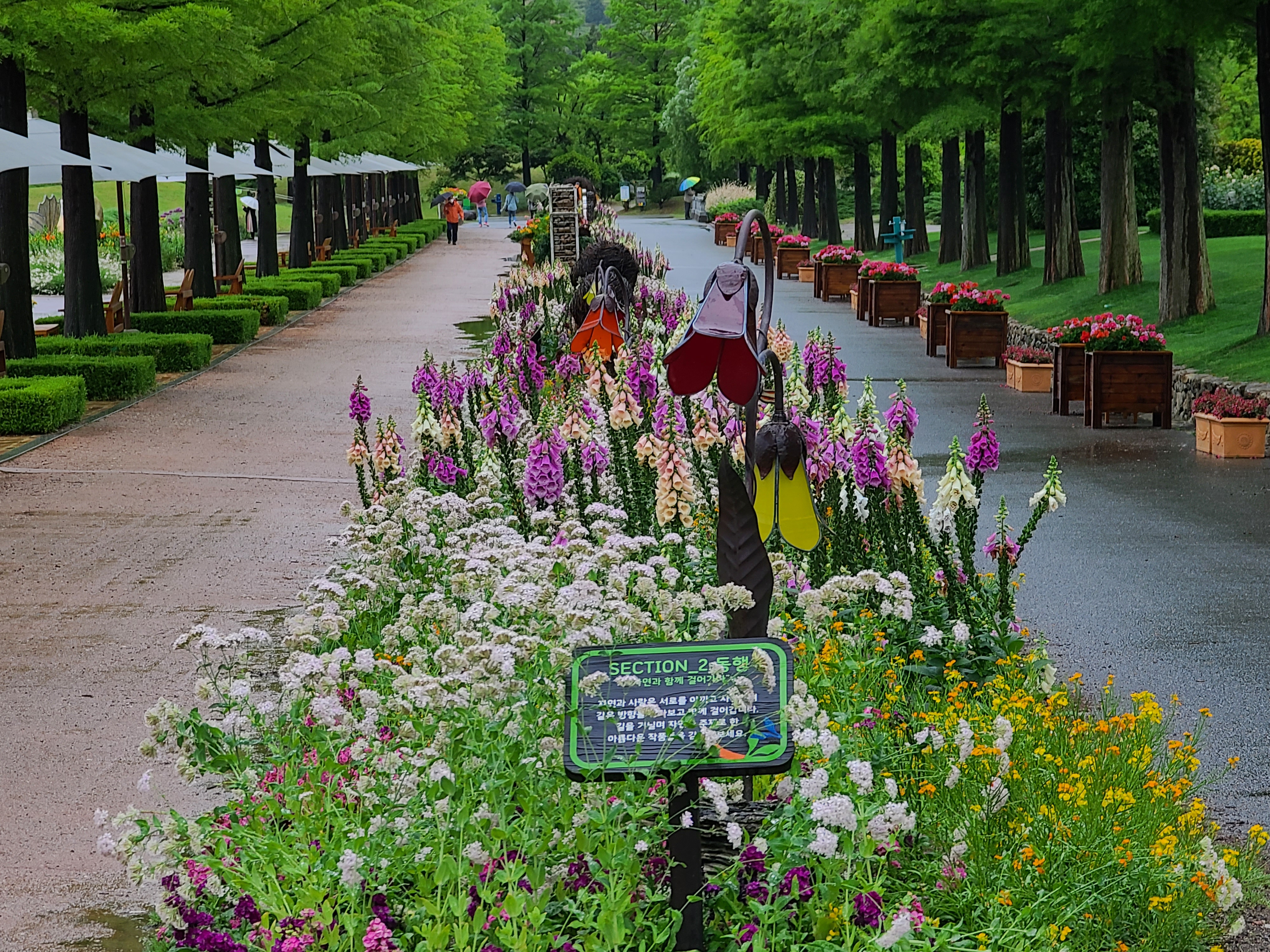 빗물 흠뻑 품은 각종 꽃들을 즐기며