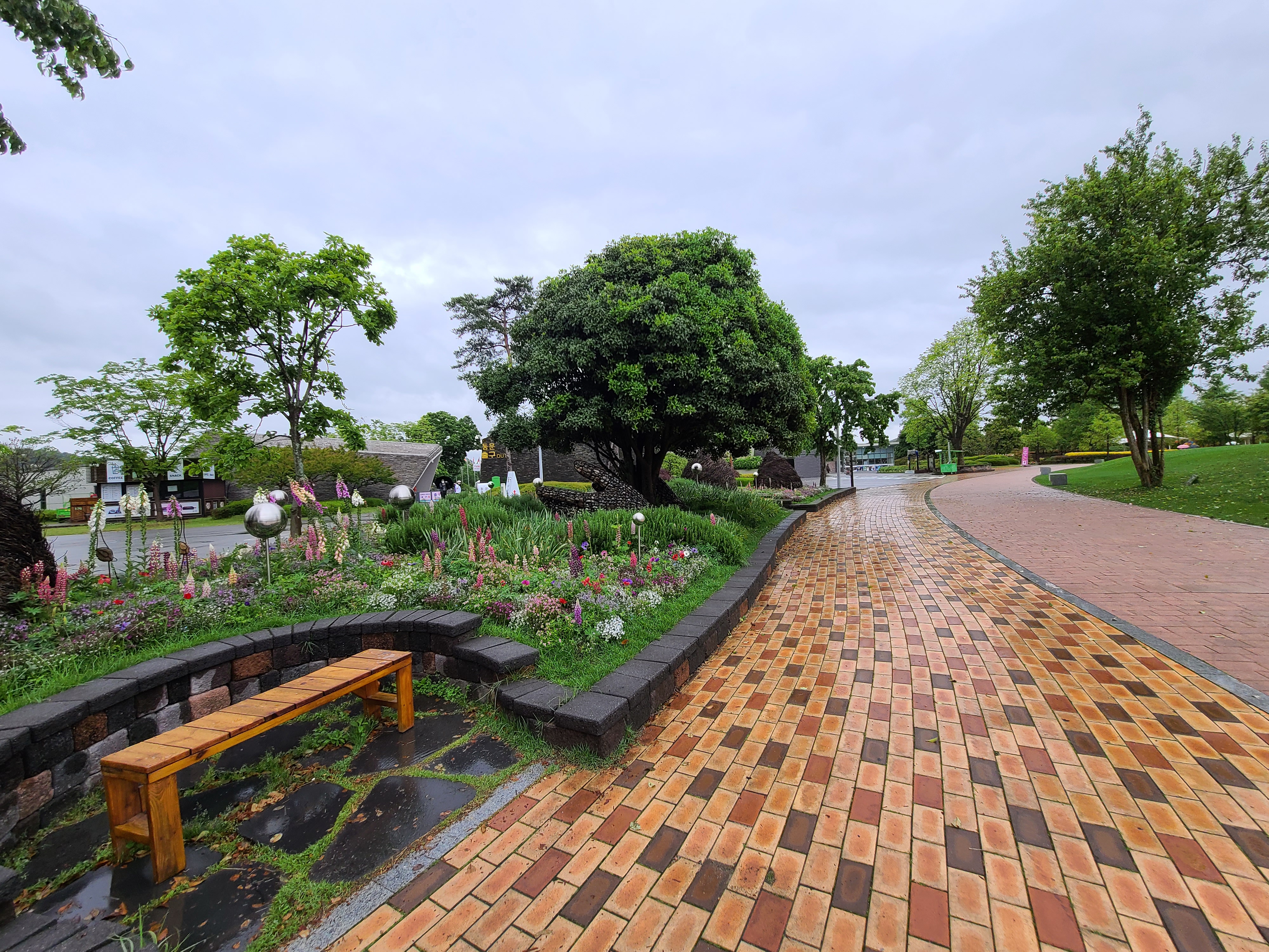물먹은 보도블록도 잘 어울리는 풍경입니다