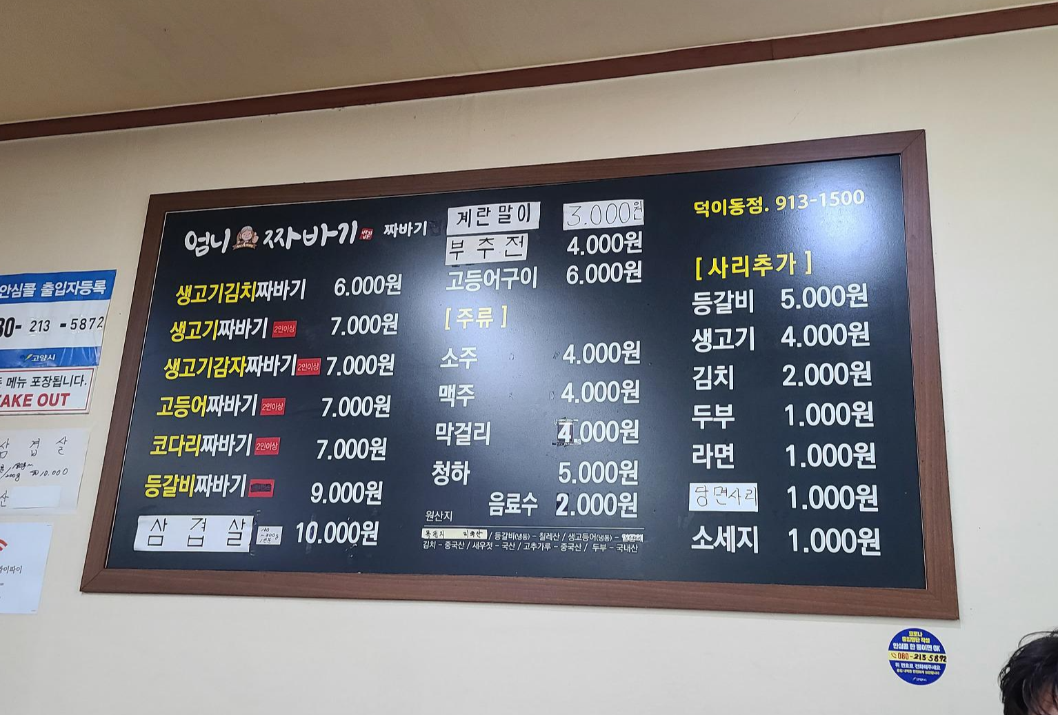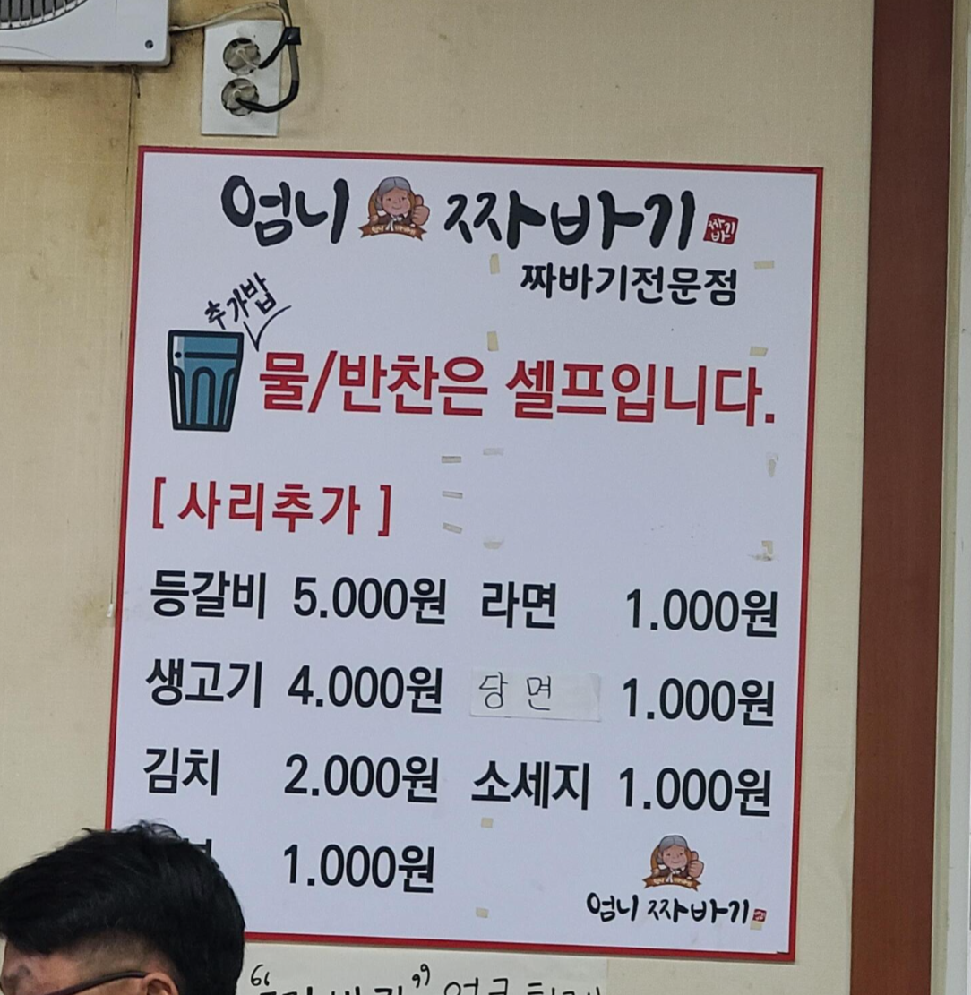 감자 짜바기 먹으며 메뉴판을 보니
