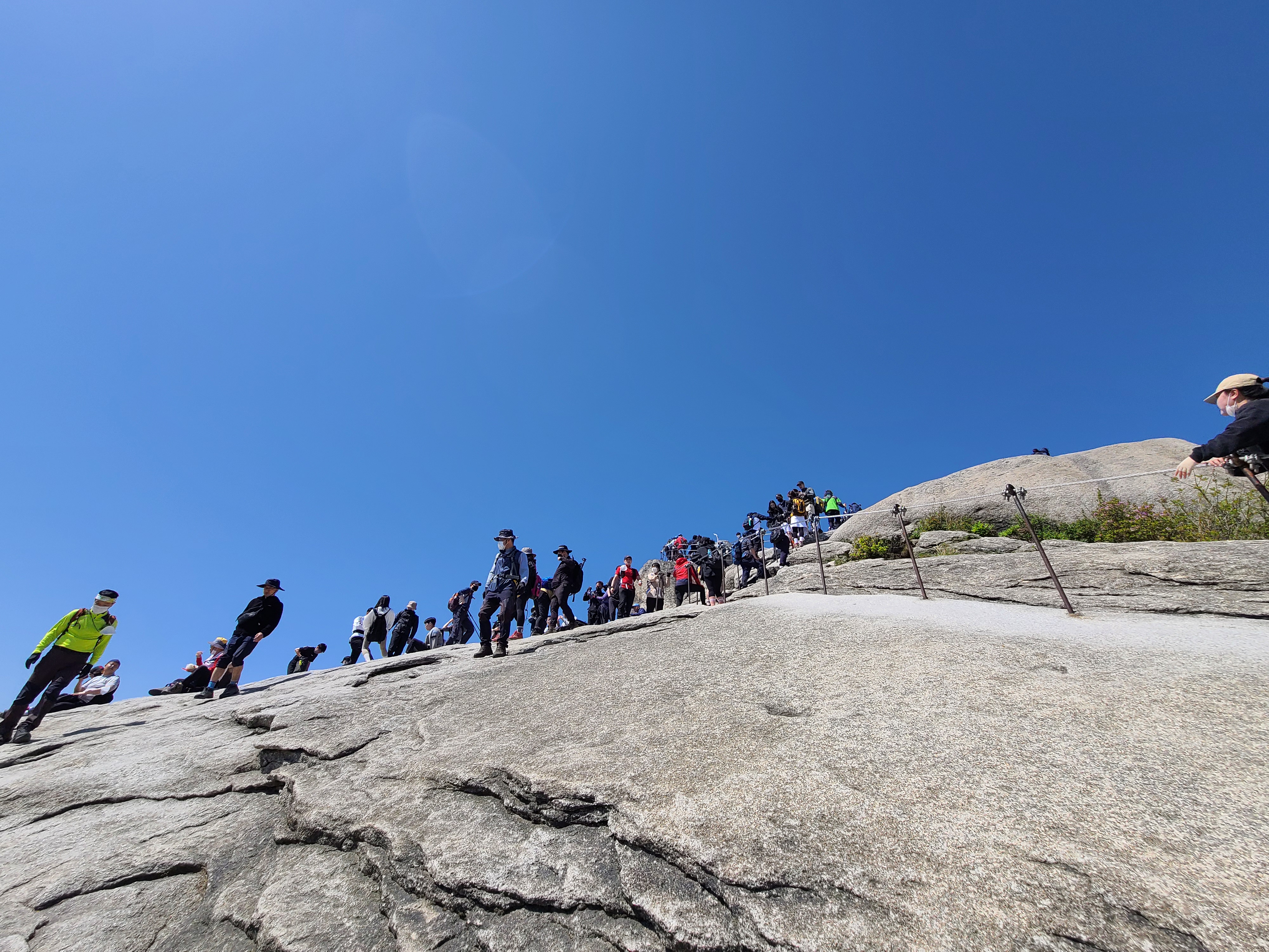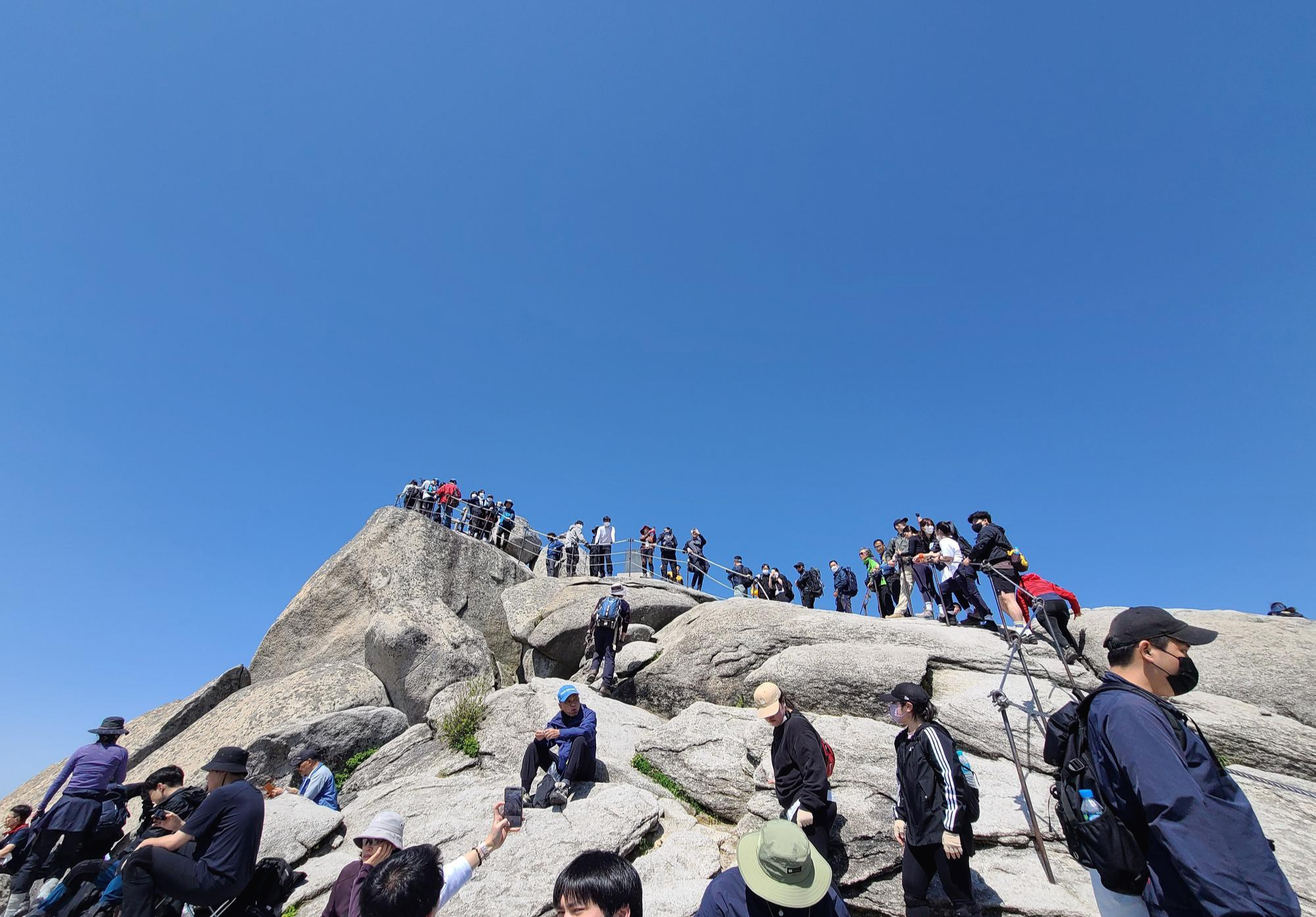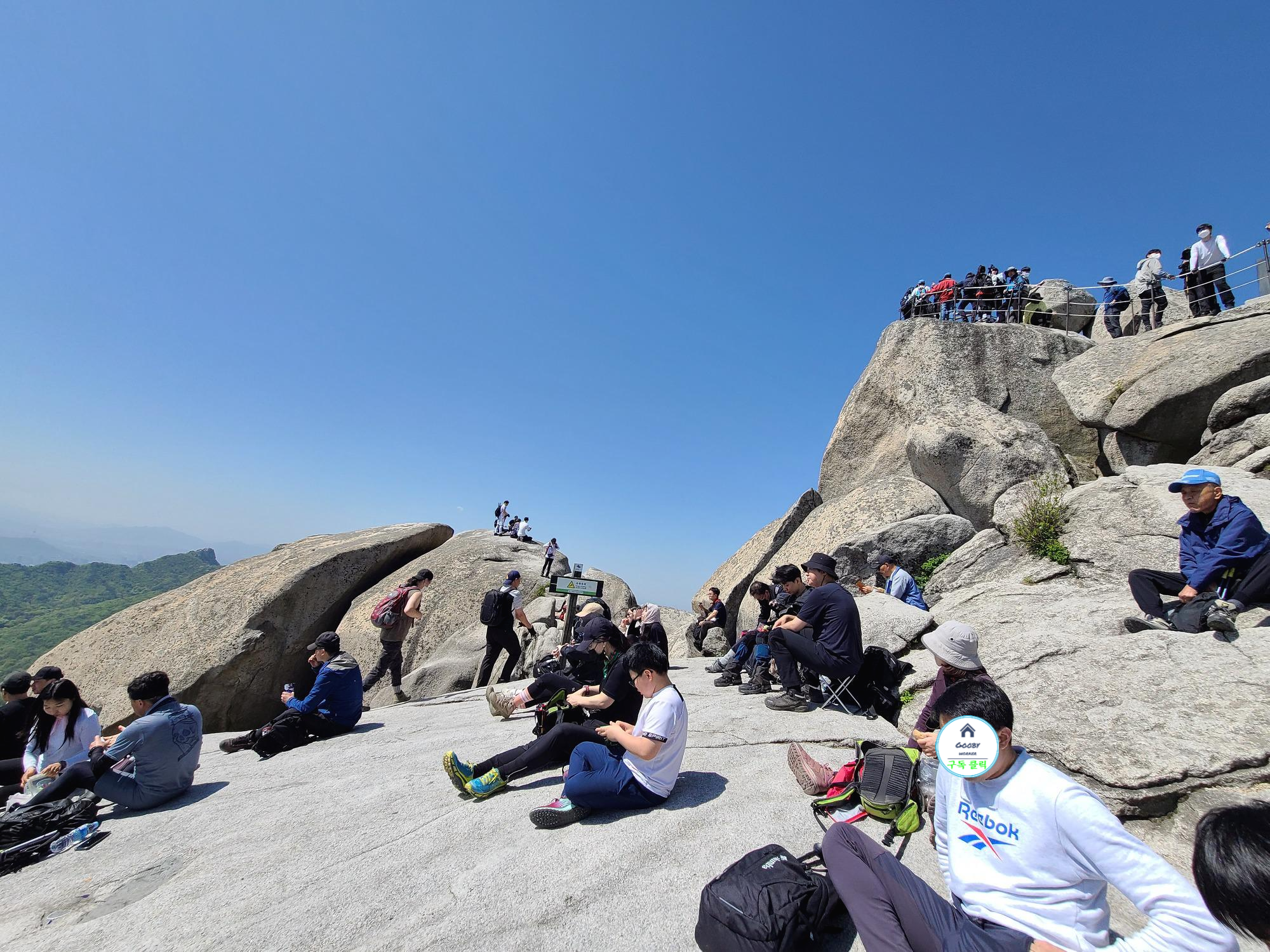 간식을 즐기는 등산객들을 뒤로하고 백운대 하산