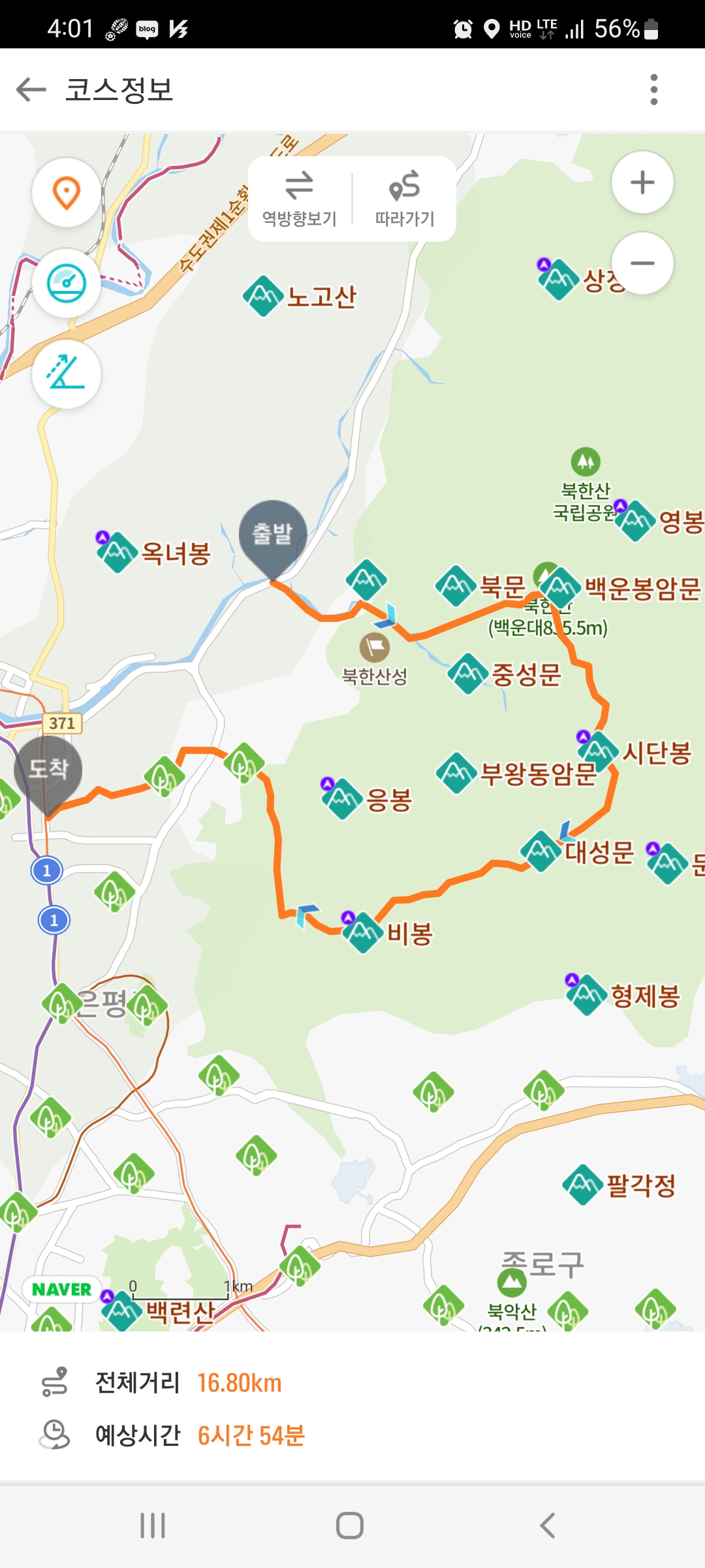 성곽길을 따라 쭉 걸어 문수봉 지나 비봉 향로봉 진관사 이말산 구파발